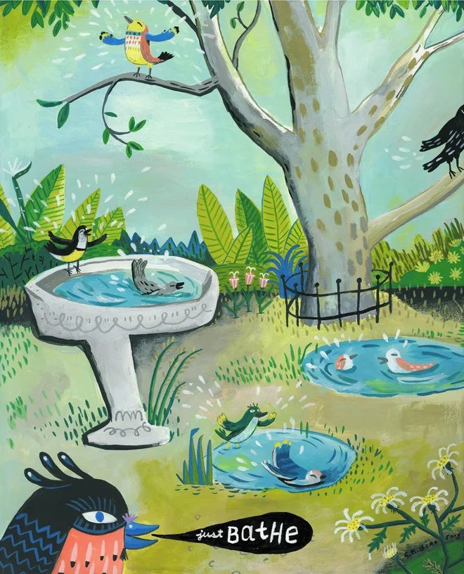 This week on my drawing board View fullsize Flibbertigibbet, aka cat food for all! A painting in my journal View fullsize Birdbath