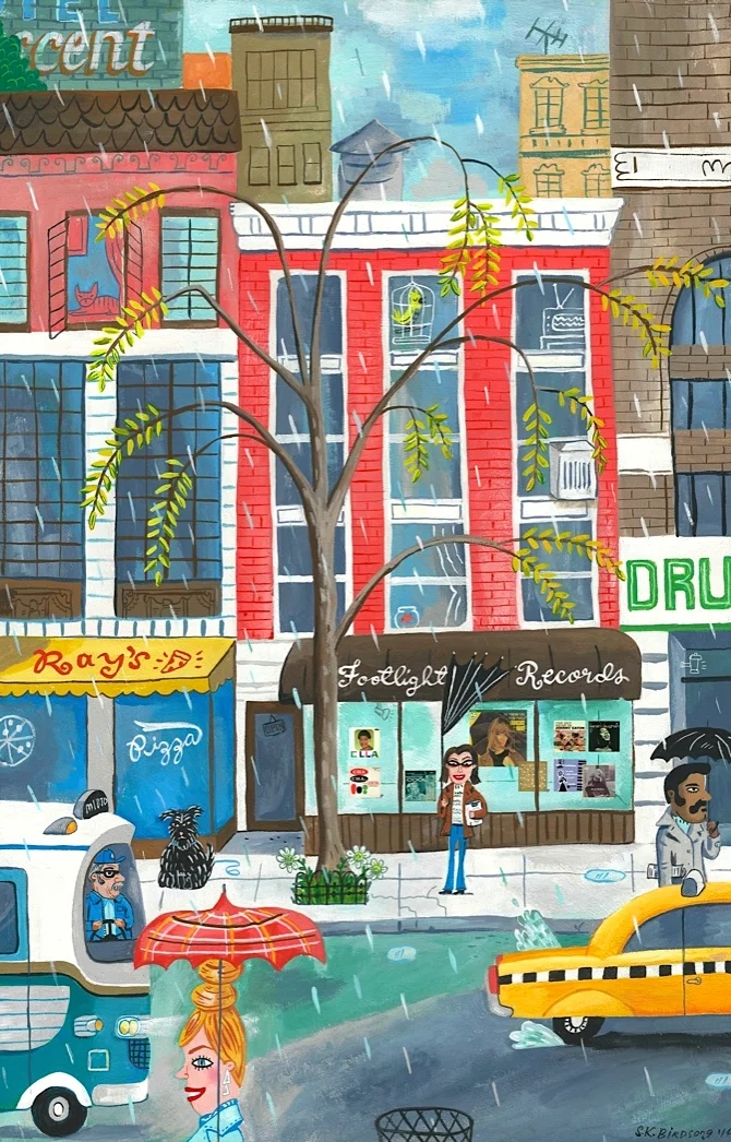 I lived in New York City for nearly 10 years, first working as an art director on the now-defunct Ladies Home Journal, and then as a freelance illustrator. I adored the freelance life! Especially wandering the streets while everyone else was working. Footlight Records was a wonderful place in Greenwich Village, a record shop specializing in vintage vinyl β broadway shows, classic jazz, vocals. Nearby I could buy a slice of white pizza. Around the corner, the Strand Book Store.