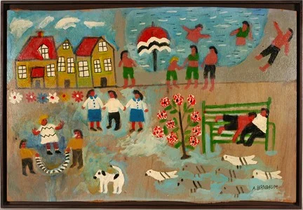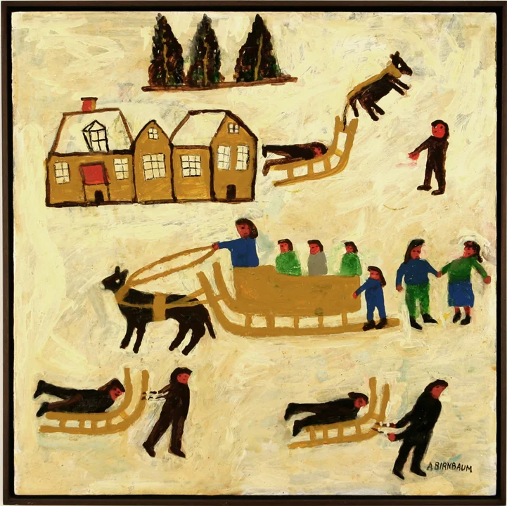 He was a dress manufacturer who took up painting at the age of 70 and became a beloved folk artist. His daughter brought him paints and art supplies to help ease the loneliness after the death of his wife. A year before his death at the age of 103 in 1998, Birnbaum went to the opening of a retrospective of his work at the Aldrich Museum of Contemporary Art in Ridgefield, Conn. "When they arrived for the opening, Mr. Schuss recalled, Mr. Birnbaum seemed humbled, saying, 'If I would have known my paintings were going to a museum, I would have worked a little longer on them.'" β 1998 NYT obituary.